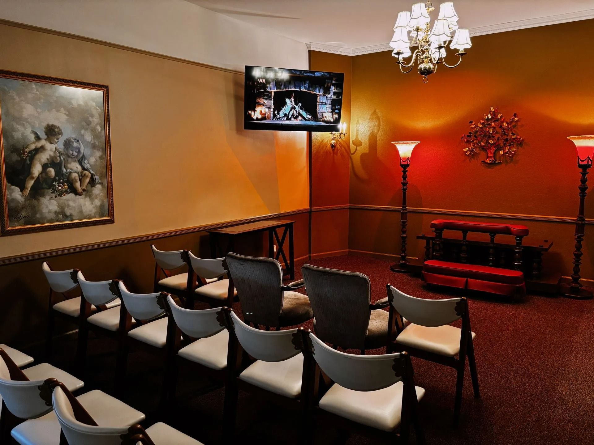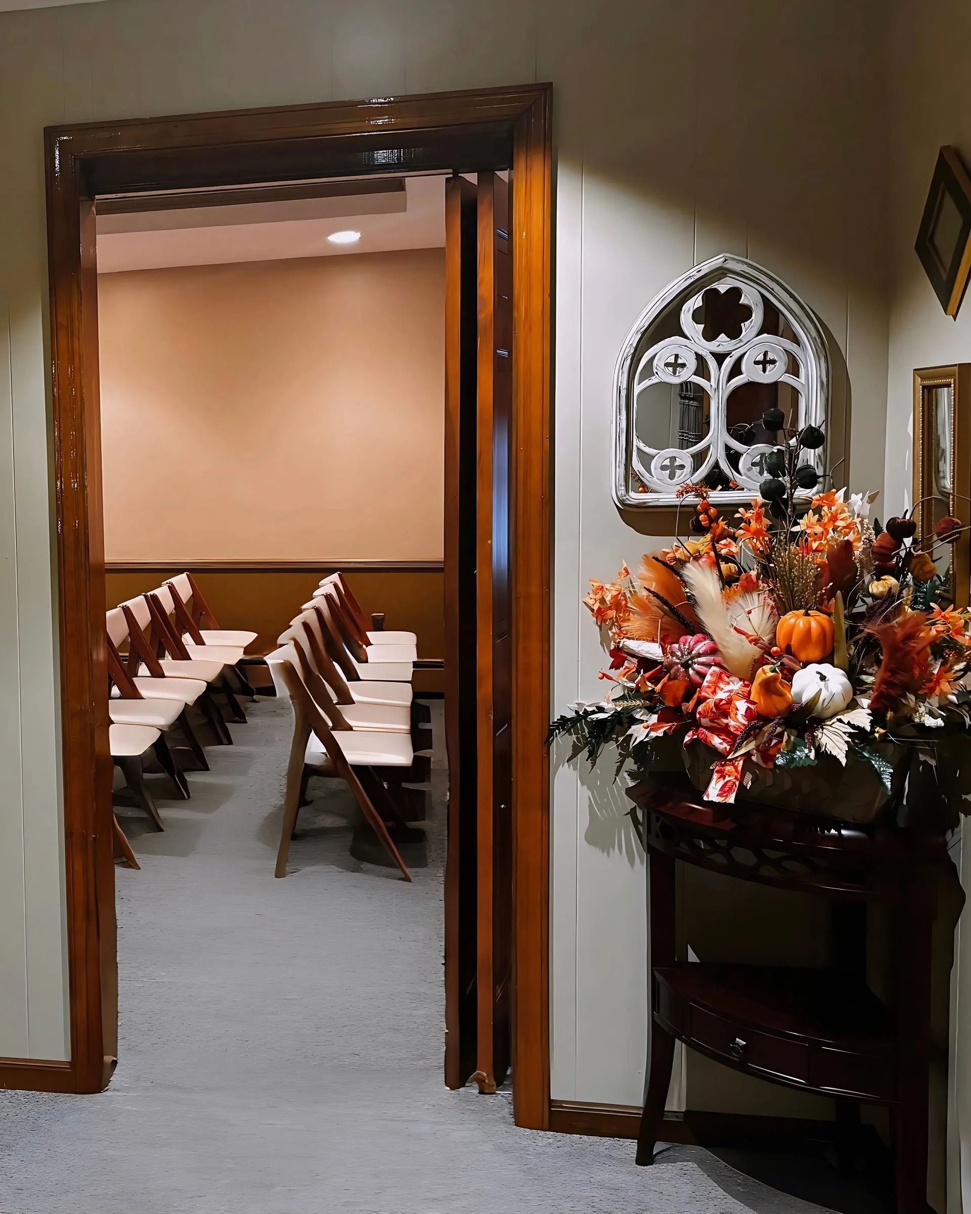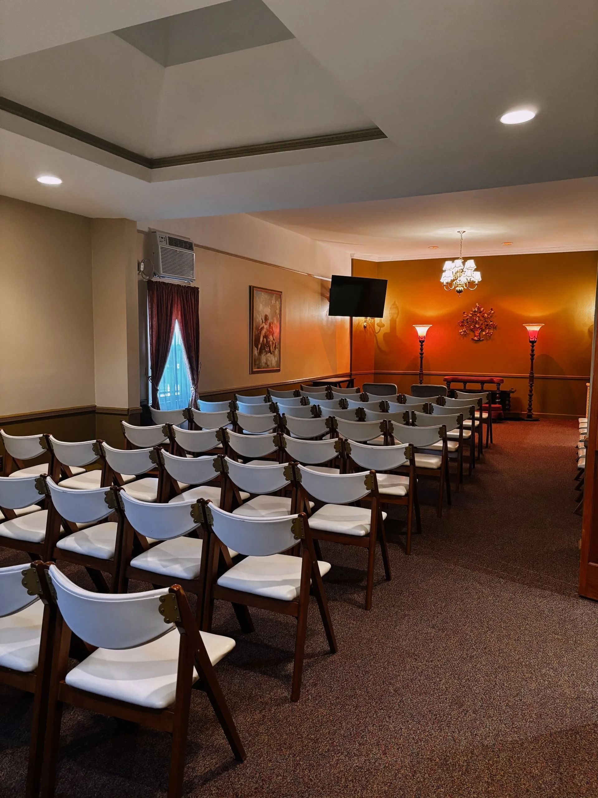 - Spacious parking for up to 50 cars and a chapel that seats up to 100 people plus handicap accessibility.